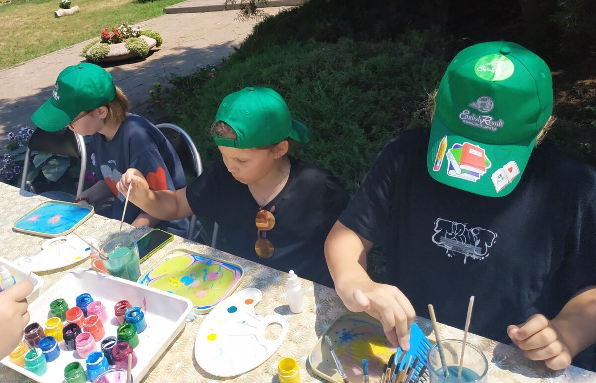 🎨Сегодня на экскурсии в скульптурном дворике Таганрогского художественного музея и на мастер-классе "Рисунок в технике эбру" побывали воспитанники детского лагеря при Языковом центре English Result.