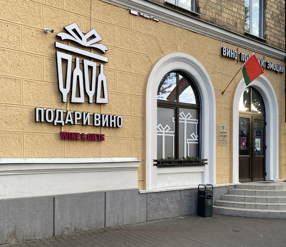 Начну с винотеки «Подари вино», расположенной по адресу улица Советская д.48. Несмотря на адрес, вход в винотеку не с самой пешеходной улицы Советская, а со стороны улицы Гоголя. Вывеску видно издалека мимо не пройти.