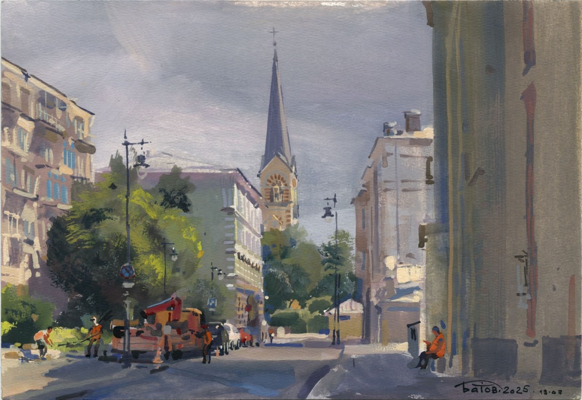 20250713 Петроверигский переулок / Petroverigsky Lane, Moscow / 26x38 / plein air gouache painting