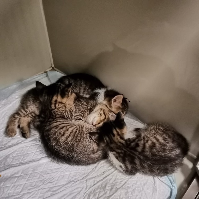 Огромная трагедия маленькой кошки.... Тяжёлым камнем легла в наши сердца эта история, которая вдруг стала реальностью. Утром раздался звонок, тревожный мужской голос сказал, что у него на руках совсем маленькие котята, вывезенные из зоны боевых действий. Вздохнув, он сказал: «Если бы вы знали, из какого ада мы их привезли...» Ты сердцем понимаешь, надо помочь. А в голове мысли- куда? Как? Ребята уже на пороге, мы все на работе, а действовать надо срочно. Созвонились с зооцентром, котят согласны оставить там на платную передержку. Через некоторое время военные позвонили сказать спасибо и рассказали подробности. Оказалось, что кошку оставили эвакуированные люди и она продолжала жить в пустом доме. Потом дом разрушили. А она все равно никуда не уходила. Военные её стали подкармливать по возможности и вот в начале июня она окотилась. Ребята решили вывезти семейство из под обстрелов. Но сначала удалось поймать только маму кошку, да и то не было возможности её куда то определить. Поэтому ее
