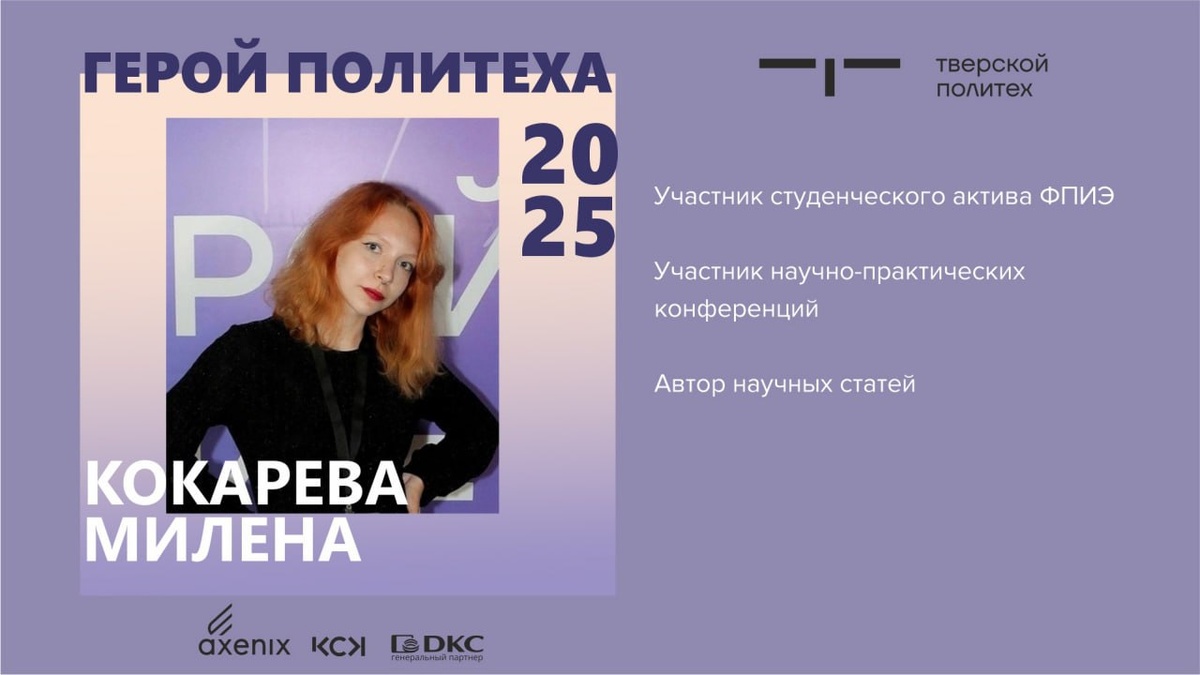 ⭐️ Тверской государственный технический университет продолжает представлять вам лауреатов ежегодной премии «Герой Политеха
