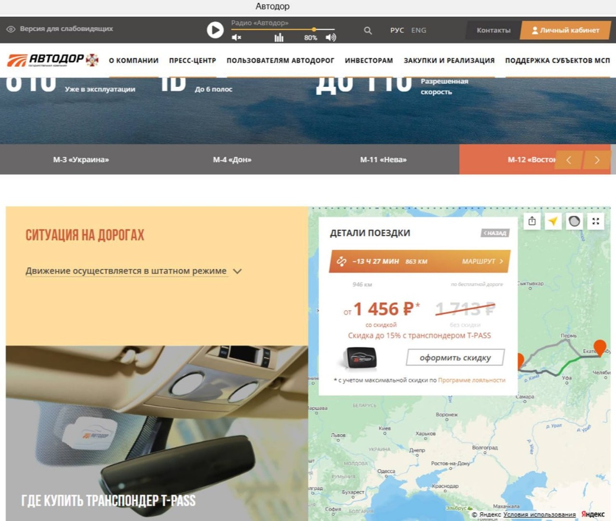 Система расчёта стоимости проезда по платным дорогам ГК «Автодор» начала рассчитывать ценник на движение по магистрали М-12 «Восток» на участке от Екатеринбурга до Казани. Открыть перегон Дюртюли-Ачит планируется сегодня.