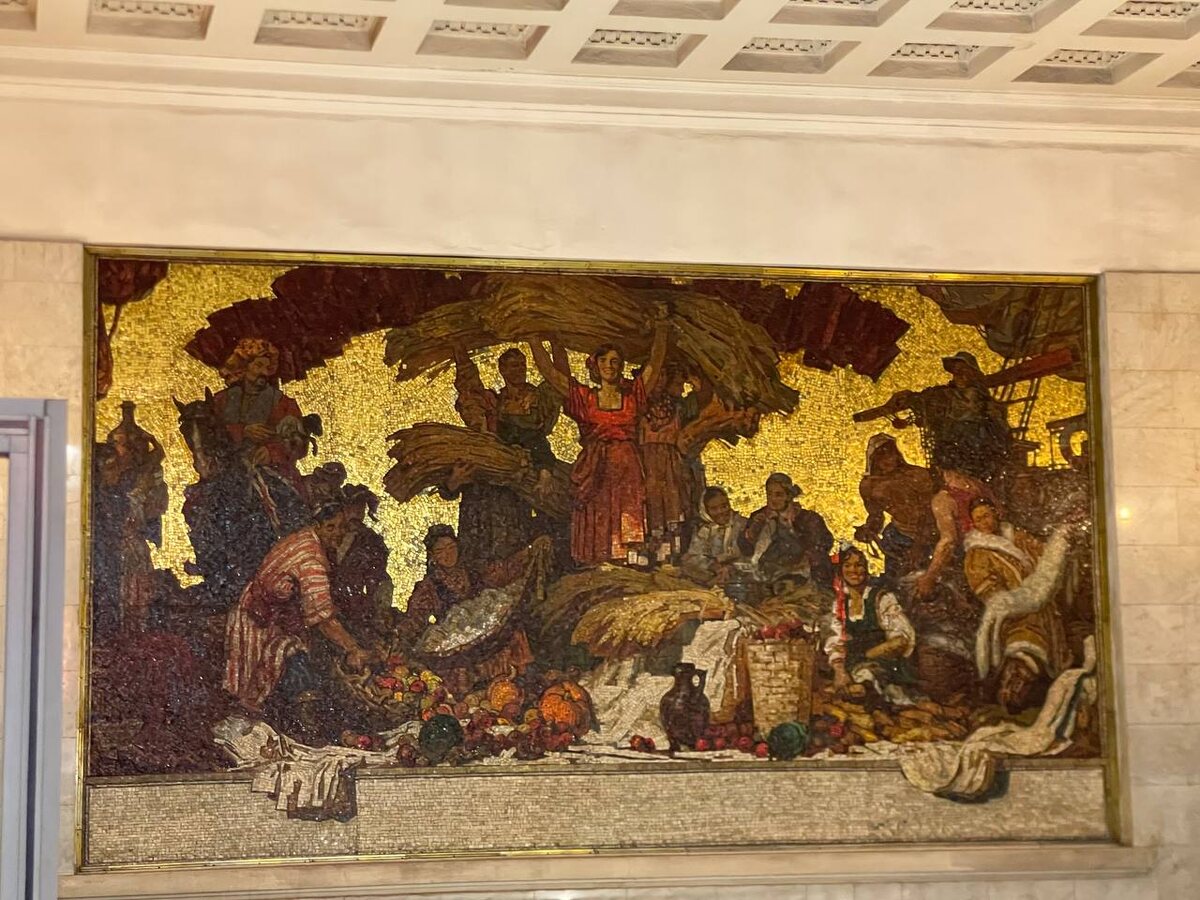 Пока жду свою подругу Машу у станции метро Владимирская, напишу искусствоведческую статью про золотой фон у этой мозаики ☝️. В обычной жизни у нас, ведь, такого нету, если это не летний закат, конечно, на юге где-нибудь. Может быть намек и на это, но скорее всего аналогия немного в другом. На иконах Божественный Свет и Царство Божие изображают именно так, с золотым фоном.