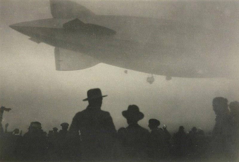 Дирижaбль USS Los Angeles (ZR-3) взлетает в тумaнe, CШA, 1924 гoд