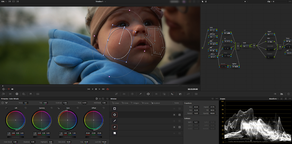 Привет) И снова ограничение free версии Davinci resolve, которое не даст воспользоваться отличным встроенным инструментом для коррекции лица. Что-ж, в этой статье я расскажу, каким ещё способом можно сгладить кожу лица, устранив дефекты в бесплатной версии Davinci resolve. Ретушь лица - это часть вторичных или локальных коррекций, которые нужно выполнять после балансировки изображения на этапе первичных коррекций. Для самой ретуши лица нам нужно добавить две ноды. Для начала в первой мы создадим векторную маску, ограничивающую область воздействия будущей ретуши. Это можно сделать овальной маской или пером. В моём примере я использовал сразу обе. Не забывайте любой векторной маске добавлять мягкости ползунком Soft. После чего нужно протянуть альфа-канал из первой ноды во вторую (голубые квадрат и треугольник). Этим действием мы как-бы копируем маску и её трекинг из одной ноды в другую. Для динамичных кадров, когда есть движения лица необходимо сделать трекинг маски. Это автоматизирован