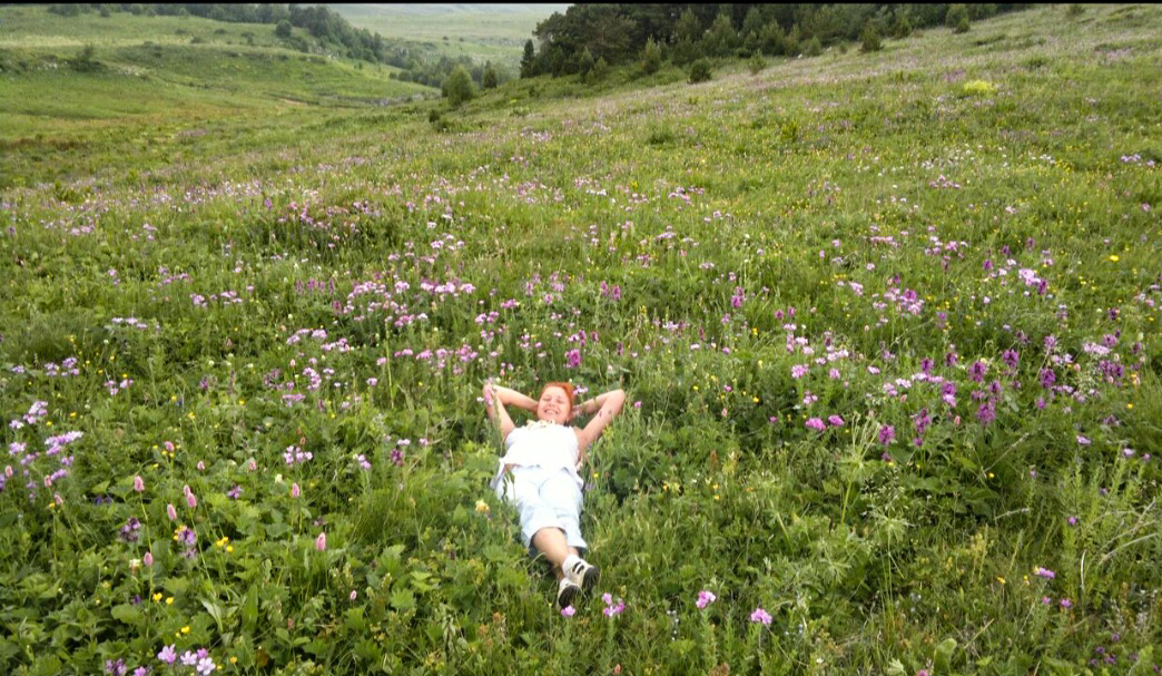 Впервые я побывала здесь во время медового месяца. У моего новоиспеченного мужа живут друзья в городе Апшеронске Краснодарского края, у которых мы остановились и от которых очень удобно было ездить по местным достопримечательностям. Когда мы приехали в Лаго-Наки, когда я увидела эти бескрайние альпийские луга, эти захватывающие дух обрывы, эти цветущие рододендроны и поляны можжевельника, когда я валялась на пышных травах - головой в цветах , ногах в плевках снега... я была ошеломлена! Держа в голове все эти прекрасные картины, отправилась я на экскурсию аж на весь день, без традиционного купания на источниках и с обедом в виде ланч-бокса. Первая остановка была через полчаса возле туристического комплекса «Горное настроение», где сделана дивная смотровая площадка с парящей беседкой. Вокруг комплекса симпатичная ухоженная территория, с пышно цветущими кустами роз и скамейками, а из беседки открывается восхитительная панорама на горную Адыгею. Еще небольшой переезд – и мы возле