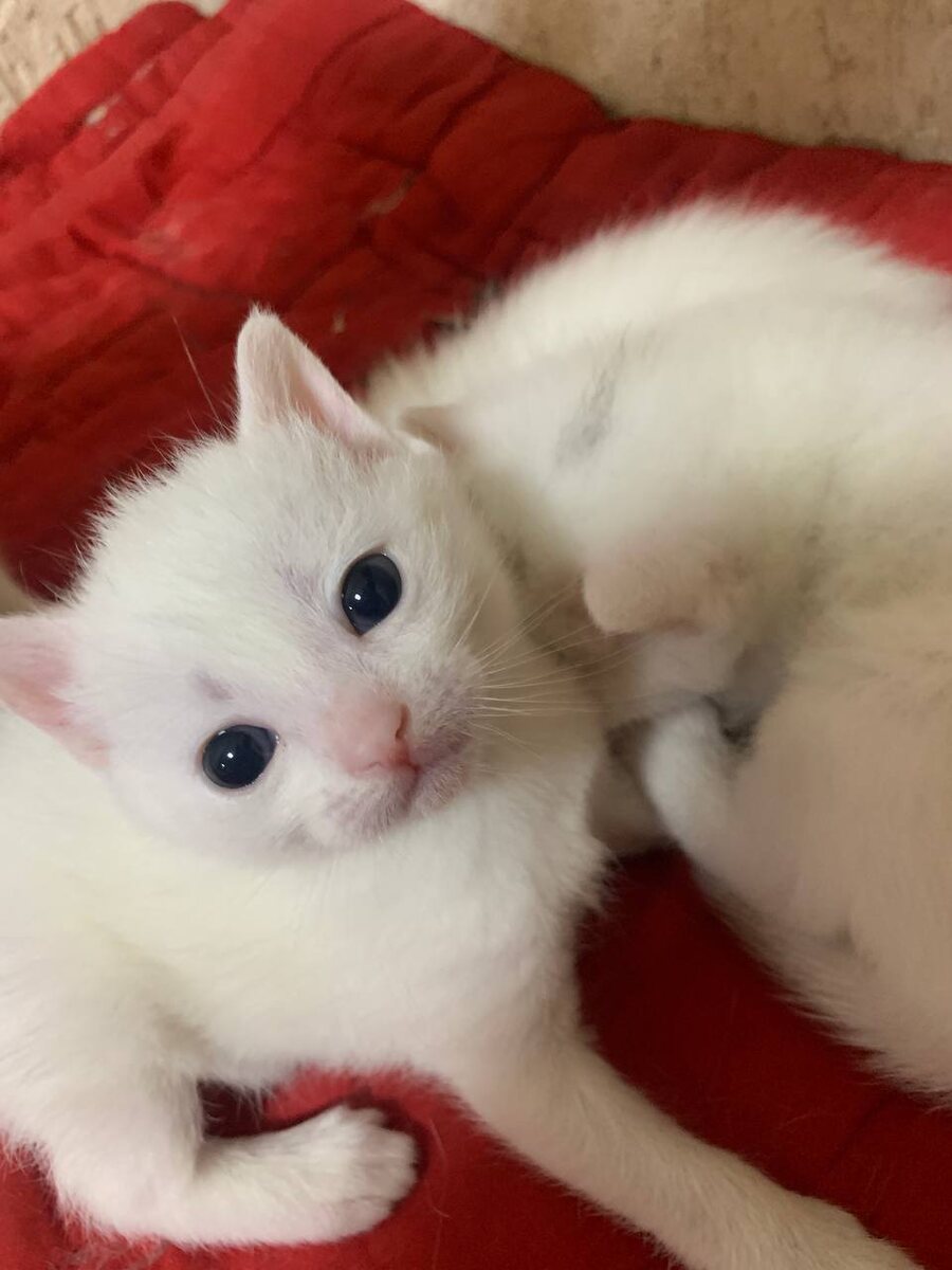 В одну из ночей кошка устроилась в старом бронежилете, который бойцы приспособили ей под лежанку, и окатилась. Трое белыхкотят с удивительными глазами. Один кареглазый, второй голубоглазый, а третий с глазками разных цветов. Суровые разведчики, прошедшие огонь и воду, превратились в нянек: соорудили коробк