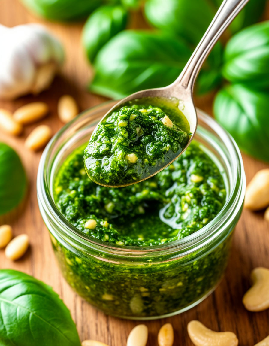 Введение: Песто — это классический итальянский соус, который идеально подходит для пасты, бутербродов и даже как заправка к салатам. Основным ингредиентом этого соуса является свежий базилик, придающий ему насыщенный аромат и яркий вкус. Домашнее песто легко приготовить в домашних условиях, и оно всегда получается более насыщенным и натуральным, чем покупное. Ингредиенты: 2 стакана свежих листьев базилика 1/2 стакана оливкового масла 1/3 стакана кедровых орехов (можно заменить грецкими или миндалем) 1/2 стакана тертого пармезана 2 зубчика чеснока Соль по вкусу Приготовление: В блендере или кухонном комбайне измельчите орехи и чеснок до мелкой крошки. Добавьте листья базилика и немного оливкового масла, взбейте до однородной массы. Постепенно введите оставшееся масло и пармезан, продолжая взбивать. Посолите по вкусу. Советы: Для более насыщенного вкуса используйте свежие, ароматные листья базилика. Храните песто в герметичной банке в холодильнике до недели или заморозьте порциями для до
