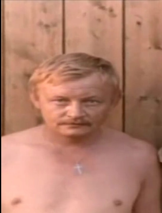 Он был гениально разнообразен, моногранен был, не замыкаясь, как нынче почти все, а тогда немало в одном амплуа,дурачка" или наоборот "праведника", или "коммуниста" - не важно. Он везде был гениален! Начальник (Камчатки ошибочно) Чукотки, жених Тани Теткиной, Крыс, Нестор Петрович. И много других добротно, проникновенно, талантливо прожитых ролей. Среди них, ролей многих, при упоминании его имени мне практически неизбежно вспоминается лихой и бесшабашныц конокрад Васька из фильма со звёздным составом "Ищи ветра... 1978 года. Гениальная работа всех участников и создателей фильма. Васька не боялся быть расстрелянным белыми, не застрашился и новую власть, большевиков, поддержать! Только... Убили его белые... А скриншот как раз оттуда - из кинофильма "Ищи ветра.... Когда Ваську и красноармейца Павла да отказавшегося их двоих расстреливать поручика Виктора - троих их хотели расстрелять белогвардейцы. И крест православный на Ваське. И не боится палачам в глаза смотреть... Воплотил этот запом