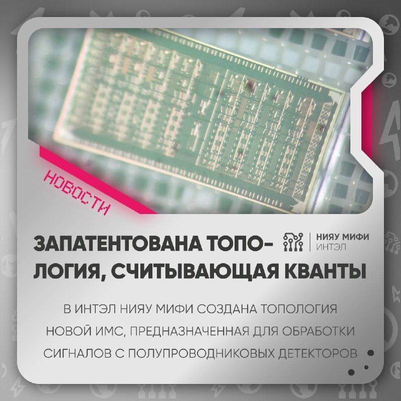 🧩 Прототипная микросхема для детекторов: запатентована топология, считывающая кванты Сотрудник кафедры №3 «Электроника» ИНТЭЛ НИЯУ МИФИ Аткин Эдуард Викторович совместно с коллегами разработал и зарегистрировал топологию новой интегральной микросхемы (ИМС), предназначенной для обработки сигналов с полупроводниковых детекторов. 🛠 Что это такое? Это 16-канальная микросхема, которая: 🔹 усиливает и сравнивает сигналы с порогом; 🔹 подсчитывает импульсы от рентгеновских квантов; 🔹 работает асинхронно по каждому каналу. 💡 Чем полезна? Такая ИМС пригодится в физике высоких энергий и медицинской диагностике — там, где нужно точно фиксировать отдельные события, вроде попадания рентгеновского кванта. 📄 Юридический статус: 🔹 Топология зарегистрирована Роспатентом под №2024630240 🔹 Коллектив из сотрудников МИФИ 🔹 Срок действия исключительного права: до 2034 года 🔗 Патент в реестре ФИПС @imaxai Подписаться