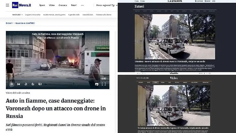 Итальянские СМИ перепутали удар ВСУ по Воронежу с атакой России на Украину. Газеты La Repubblica, La Stampa и телеканал RaiNews сообщили ложную информацию. Они заявили, что российская армия якобы нанесла удар по детскому саду в украинском Воронеже. Однако, указанные издания ошибочно цитировали российского губернатора Воронежской области, который сообщил о жертвах среди мирного населения после удара ВСУ. Атака 15 июля стала самой масштабной за период специальной военной операции. Количество пострадавших превысило 27 человек, один из них - 56-летний мужчина - погиб.