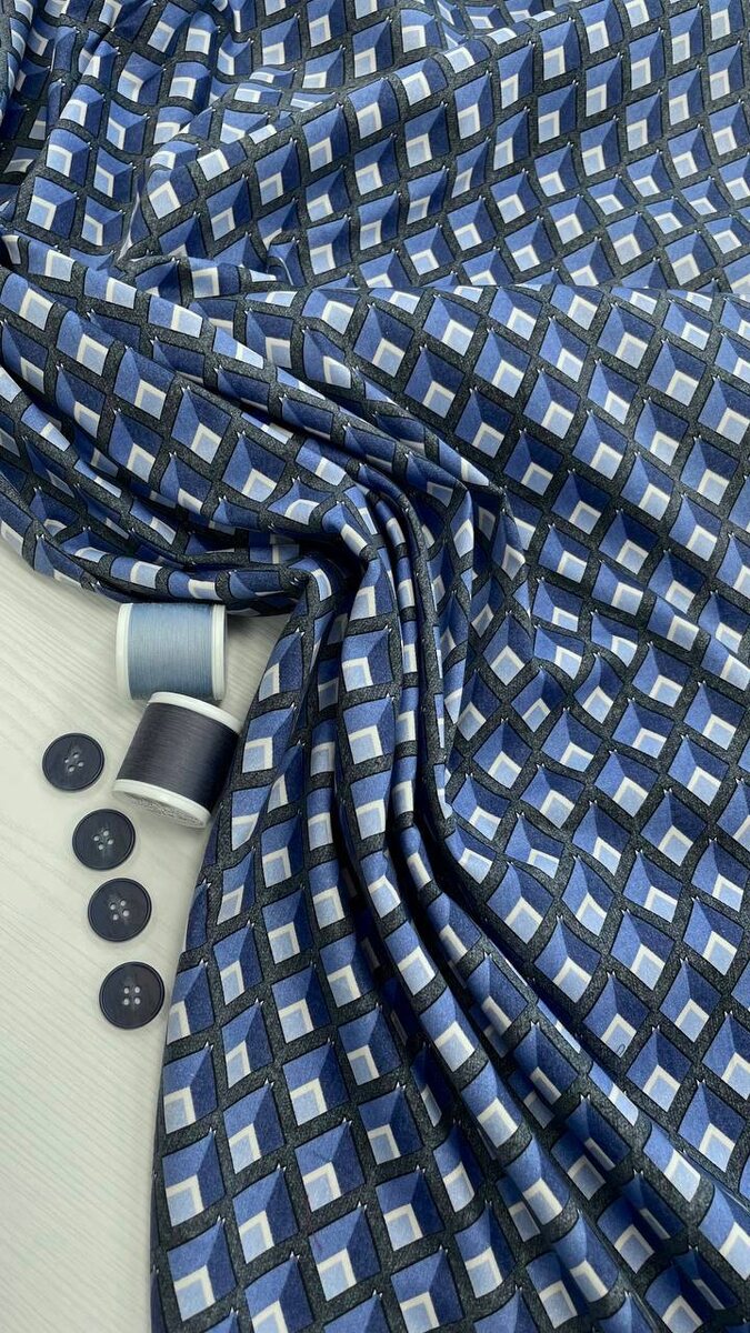 Хлопок с добавлением эластана. 3D принт в синей гамме