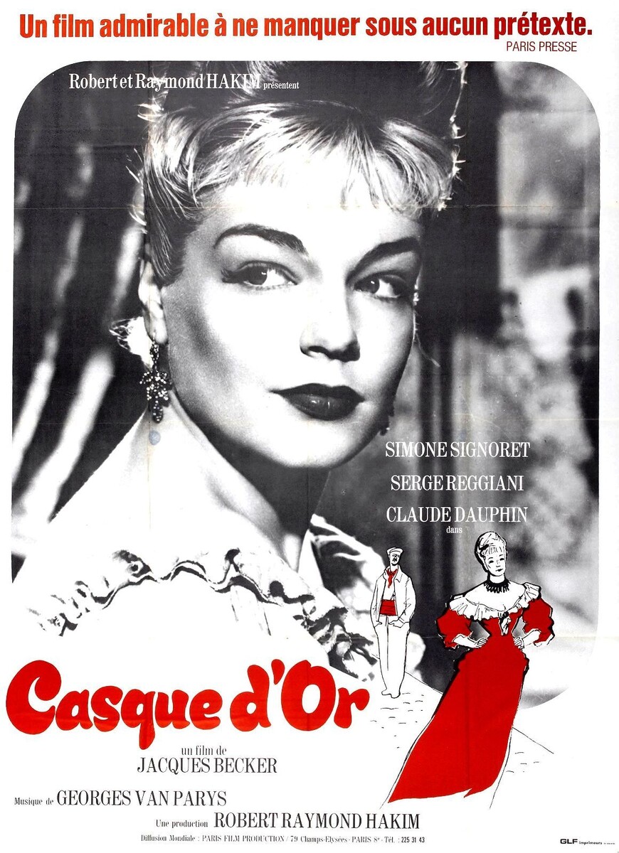 Интересная была эпоха - рубеж XIX и XX веков. У нас Серебряный век, у них Золотой. У нас Брюсов, Бальмонт, Мережковский, Левитан - у них Бодлер, Аполлинер, Рембо и конечно же Ренуар. Однако, всё эти культурные изыски совершенно не для персонажей этой фильмы. Тут в основном про маргиналов, проституток, бандитов и пролетариев. Им всем на вашу премудрость - тьфу и растереть! Ибо всеми ими движет лишь похоть и голод! Ну может не всеми! Главные герои - люди добрые и почти честные. Золотая каска - это проститутка Мари (Симона Синьоре). У неё копна золотых волос, отсюда и прозвище. Она с вереницей товарок приплыла на лодках в городской парк, где можно потанцевать, выпить по рюмочке абсента и одарить любовью любого мужчину если только у него есть сорок су. В парке гуляет банда домушников среди которых есть один полупорядочный бандит Раймон (Раймон Бюсьер). Он встречает там друга Жоржа (Серж Риджиани), он плотник. Жорж оказывает знаки внимания Мари и приглашает её потанцевать. Из-за этого её