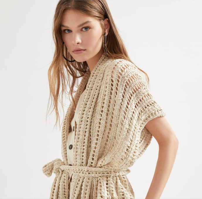 Грубоватые текстуры в летнем стиле и ажурная резинка - отличительные особенности кардигана Даззлинг.