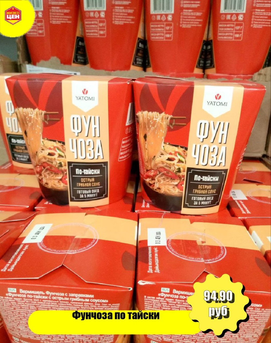 Сегодня во всём мире отмечается День вкусной еды. И, по счастливому совпадению, к нам сегодня пришла фунчоза — универсальный солдат восточной кулинарии! Так что, встречайте: 🥢Фунчоза по-китайски в классическом грибном соусе. Тут вам и жареный лук, и грибы шиитаке, и семена кунжута, и красный перчик. Пальчики оближите! 🥢Для тех, кто предпочитает «погорячее» — фунчоза по–тайски. С устричным соусом и перцем чили. 🥢А тем, кому и этого мало, предлагаем Том-ям. В меру острый, с характерной кислинкой лайма, со сладковатым ароматом кокосового молока, с чесноком и имбирём, с кинзой и перцем чили. Настоящее наслаждение для вкусовых рецепторов!