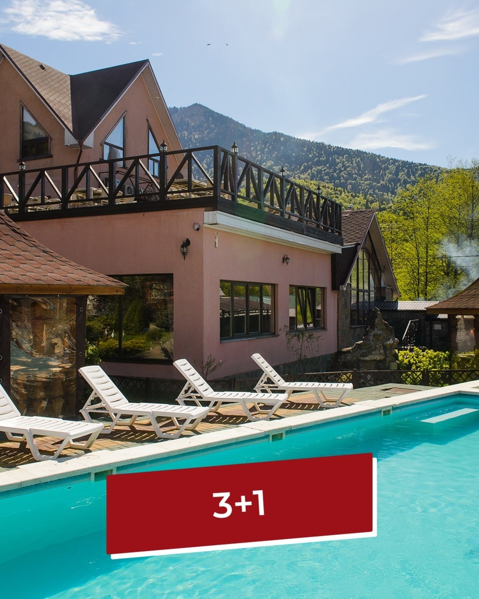 При бронировании номера в будние дни на 4 суток четвертые сутки абсолютно бесплатно