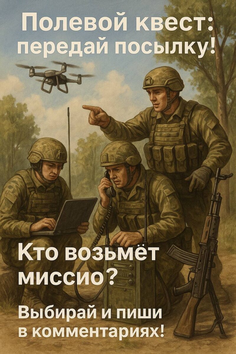⚡️Квест: передай посылку! 🚚 Дорогие СВОи! 🔥Сегодня запускаем новый интерактив — полевой квест «Передай посылку». Хочешь почувствовать себя участником настоящей фронтовой истории? Читай внимательно и принимай участие! 📦 Задача дня Ситуация — нужно передать срочные медикаменты из одной позиции в другую. Каждая минута на счету! Перед нами встали три кандидата: - Водитель дронов — мастер незаметной доставки техники. - Полевой связист — всегда на связи, знает все тайные тропы. - Старший пулемётчик — сила и решительность, но может привлечь внимание. 🤔 Кто возьмёт миссию? Пиши в комментариях, кого бы ты выбрал и почему. ⬇️ Аргументируй: чьими качествами ты бы доверил такую ответственную задачу? Может быть, у тебя есть собственный креативный вариант! 🎁 - Самые интересные аргументы попадут в мини-историю или комикс по итогам дня! - Автор самого остроумного комментария получит подарок - Следи за продолжением рубрики. Ваша вовлечённость делает наш канал сильнее! Давай вместе решат