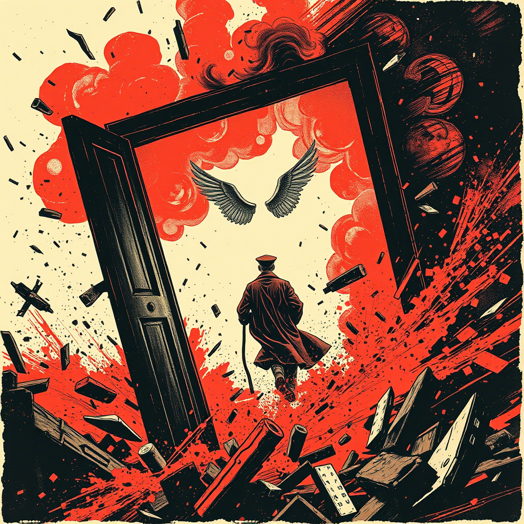 Спустя некоторое время в приёмной, соединяющей коридор и квартиру, прогремел сильный взрыв, дверь с грохотом выбило и отбросило к противоположной стене; затем, изогнутая подковой, она застыла на мгновение в воздухе, после чего всей своей массой медленно упала на пол, проломив несколько сантиметров дубового паркета. Гром окончательно развеял сумраки рассвета и разнёсся по всему зданию. Посыпалась штукатурка и цемент, кругом поднялась пыль, после наступила тишина.