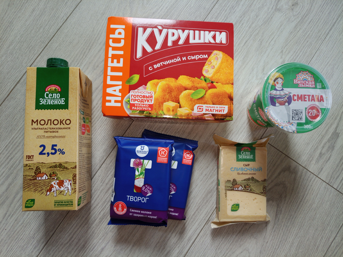 Вот что купили. Я вообще покупные наггетсы не одобряю, но мы с мужем сейчас на ПП, а доче худеть не надо, ей вредности хочется есть.