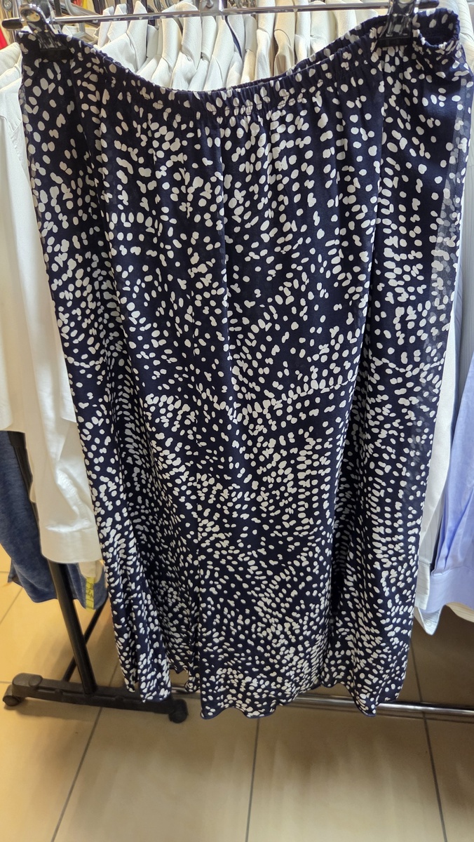 Сейчас я в поездке: нахожусь в одном из городов Сибири. Помимо своих дел решила ещё и заглянуть в местные секонды. Мне очень интересно посмотреть ассортимент, бренды, цены, составить общее впечатление. Также в разные годы от разных людей я неоднократно слышала мнение о том, что самые интересные и качественные вещи остаются в Москве, Санкт-Петербурге и ещё в паре-тройке крупных городов. А в остальные города что приехало, то и товар🤷🏽♀️😢 Поэтому попутно мысленно для себя проверяю и эту гипотезу. Давайте уже наконец-то посмотрим, что нашлось во втором магазине. Кстати, там я попала на скидку в 20%. По-прежнему основная цель данного обзора - показать среди увиденного максимально классные вещи. Юбка длины миди от бренда Liolа за 900р. В целом, вполне достойный состав: 92% шёлка. Эта ита