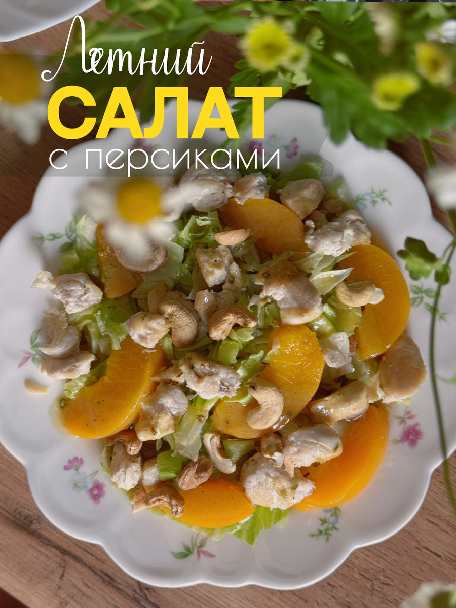 Для ценителей легких вкусов и необычных сочетаний рецепт салата с консервированными персиками в медово-горчичном соусе.