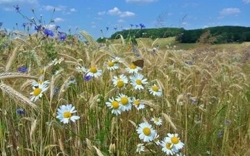 Ржаные тихие просёлки, Звон потаённых родников. А в жите – песня перепёлки Да свет ромашек-васильков. Простор полей покоя полон, Зной наливает силой рожь – Течёт-колышется над полем Его серебряная дрожь… И в этой лёгкой дрожи зноя Над нивой зреющих хлебов Такое близкое, родное – Приют счастливых наших снов!.. Нина Жибрик