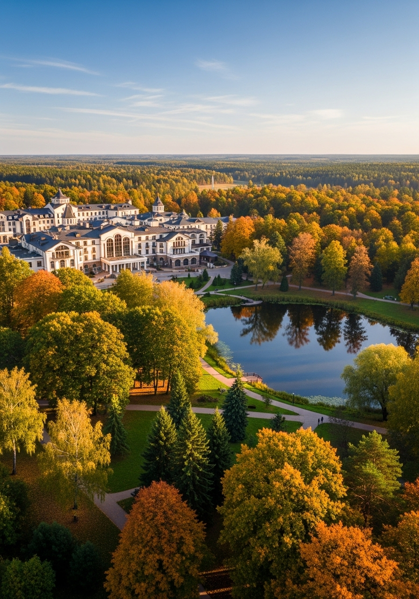 Отель предлагает размещение в исторических корпусах и современных номерах, включая уникальный купольный шатер «Сфера» с панорамными окнами и подогреваемой купелью на террасе. Комплекс специализируется на проведении свадеб, корпоративных мероприятий и романтических уикендов.