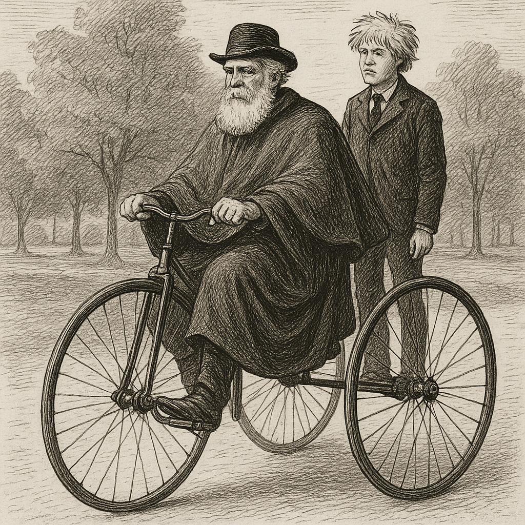 Я слушаю курс по истории Викторианской Англии, и в одной из лекций рассказывается о лорде Солсбери — премьер-министре Великобритании в конце XIX века. Он был не только аристократом, но и весьма эксцентричным человеком. В те времена это даже поощрялось: считалось, что титул обязывает к странностям. В возрасте за шестьдесят Солсбери разъезжал по лондонскому парку Сент-Джеймс на трёхколёсном велосипеде, укутанный в фиолетовое пончо. Это было недалеко от здания парламента, где он работал. Горожане устраивали пикники, чтобы полюбоваться этим зрелищем. Однако чудачества имели свою цену. Велосипед был не только дорог сам по себе, но и дополнительно усовершенствован: сзади прикрепили ступеньку для слуги, руль подняли повыше, а в имении Солсбери перестроили дорожки с крутыми спусками — проложили их зигзагами, убрав при этом 500 тонн гравия. Это уже можно назвать капитальной "тормозной системой". В чудачестве Солсбери не было позы — это была форма социального жеста, доступного лишь тем, кто не н