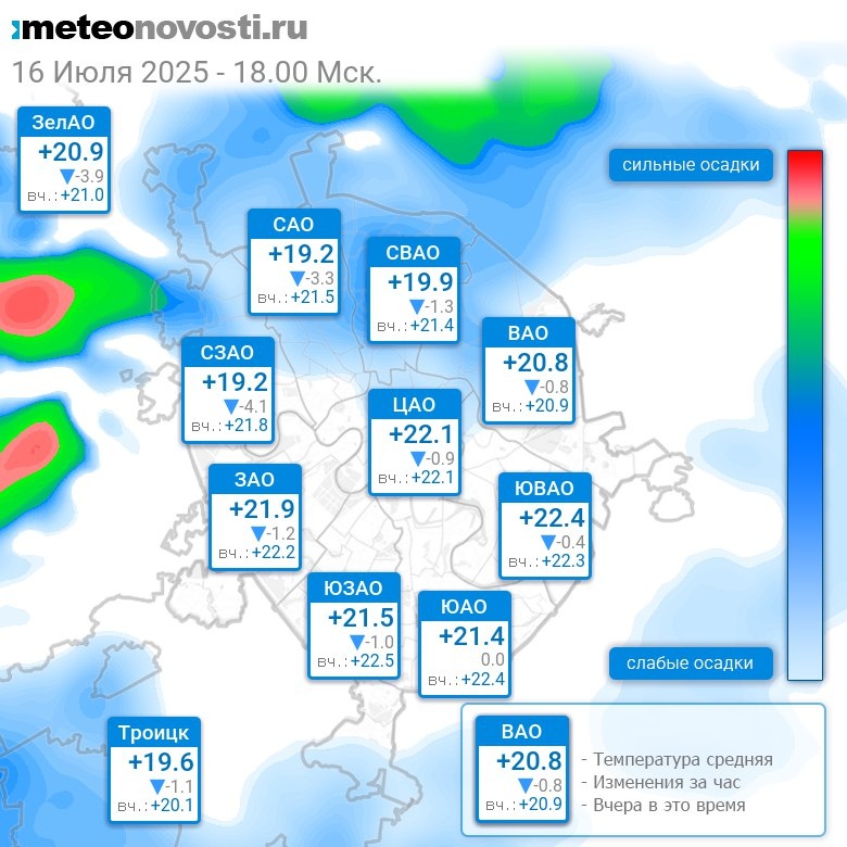 В 18:00 в Москве было от +18.3°C до +23°C, средняя температура +20.9°C #погода #Москва #лето #температура #16июля #среда