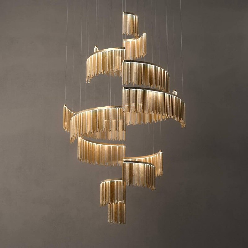 Lustralis SC1 DBL от Masiero — это архитектурная люстра, призванная с элегантностью управлять пространством. Подвешенная в форме двойной спирали, она воплощает вечный символ вознесения и текучести. Каждый ярус словно лента вьется в воздухе — динамичный, ритмичный и пронизанный ощущением движения. *В подборке представлены другие модели бренда Доступно в ТРИО под заказ. Для связи: @triointeriorbot