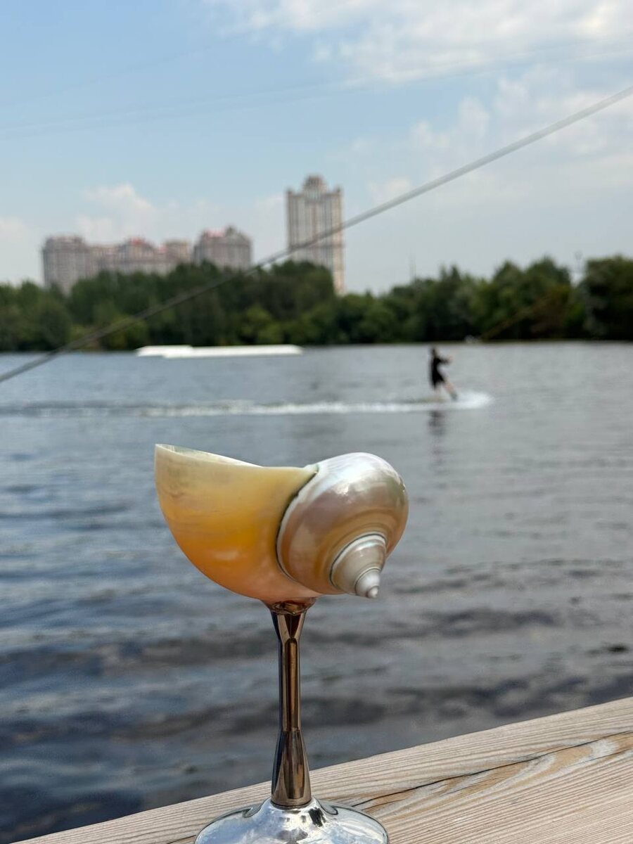 В Москве жаришка, поэтому блюдо недели сегодня — коктейль недели, красивая ракушка с коктейлем «Берег» (750₽) в одноименном ресторане на берегу Москва-реки. В составе: водка цитрус-маракуйя, ликер персик, пюре маракуйя, игристое.