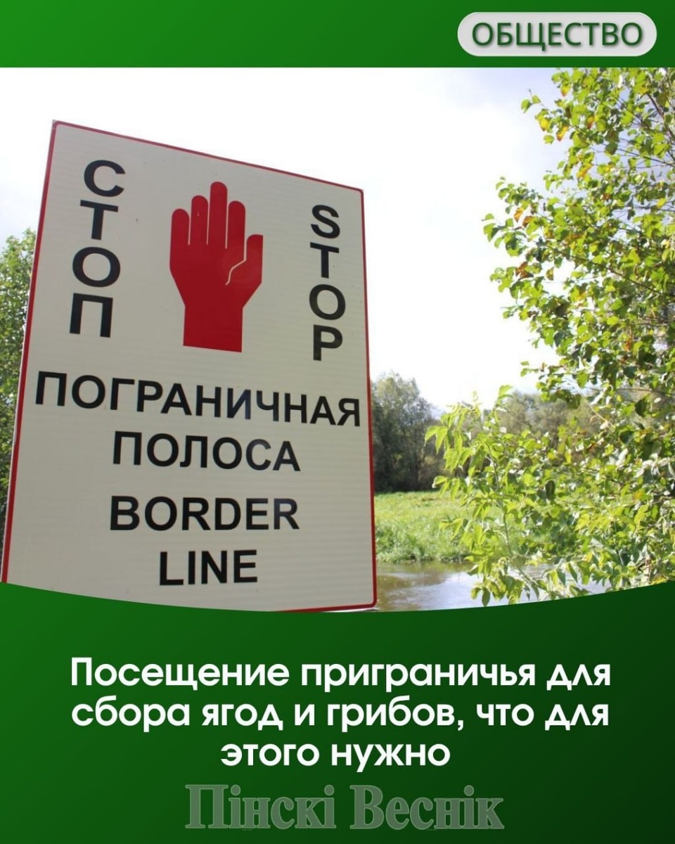 ▶️Сейчас наступил сезон отпусков, активного отдыха и период сбора дикоросов, а зачастую это связано с посещением приграничья. Находясь в пограничной зоне или полосе в туристических целях, посещая родственников, отправляясь за ягодами, грибами или на рыбалку нужно придерживаться определенных правил. Белорусам для нахождения в погранзоне достаточно иметь при себе документ удостоверяющий личность (паспорт/идентификационная карта/вид на жительство) или военный билет/водительское удостоверение/ служебное удостоверение. Иностранцам помимо наличия паспорта необходимо иметь при себе пропуск. При посещении пограничной полосы как гражданам Беларуси, так и всем иностранцам необходимы: 1️⃣документ удостоверяющий личность; 2️⃣пропуск, выданный органами пограничной службы (получить пропуск также возможно дистанционно на едином портале электронных услуг Е-Паслуга). @Пинский Вестник ЮТУБ | САЙТ| ИНСТ | ВК | ОК | ФЕ | Прислать новость