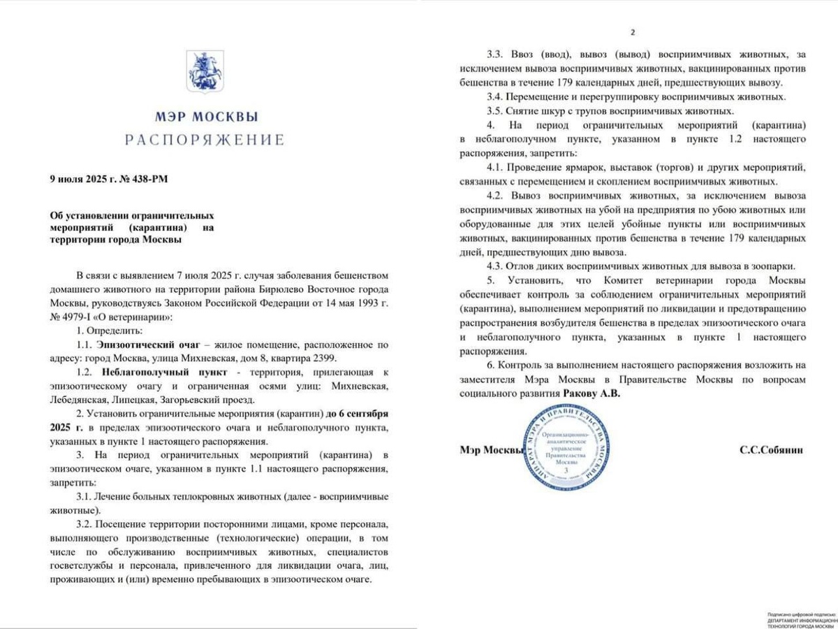 ❗️В Москве объявили карантин из-за вспышки бешенства