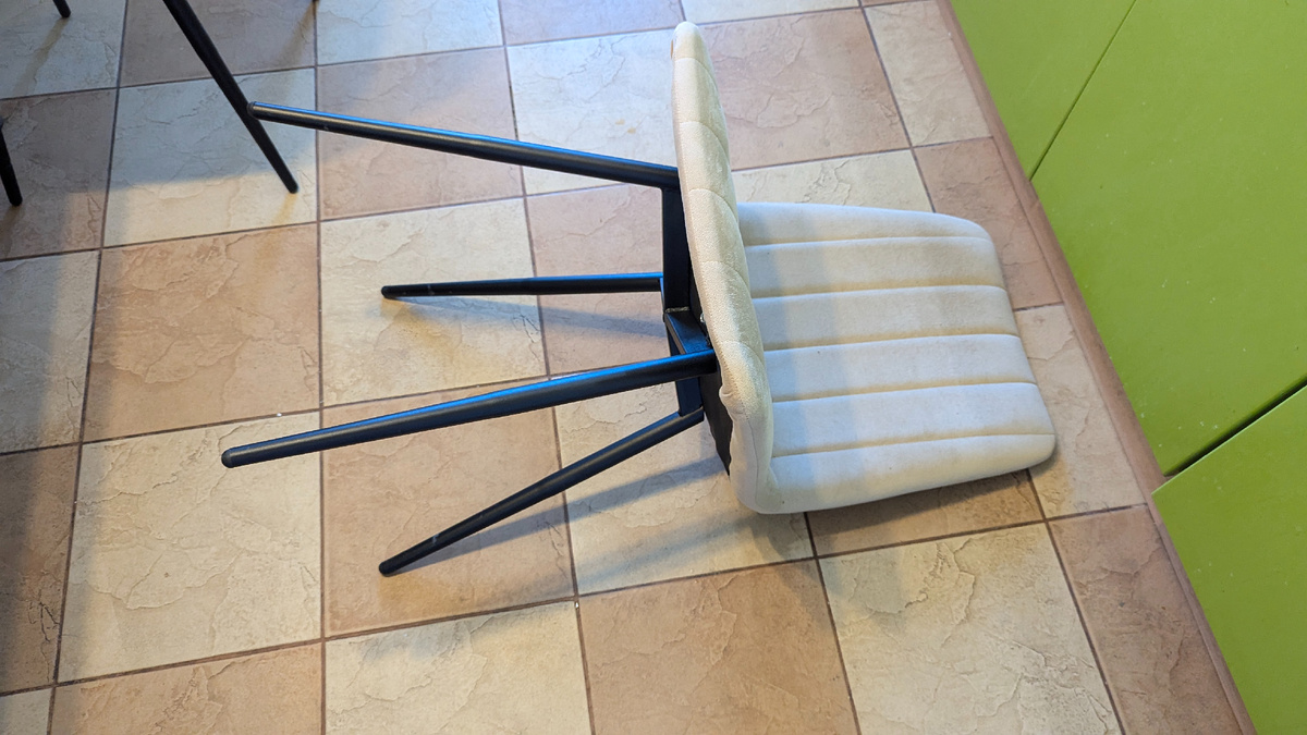 Пока умывалась, услышала на кухне грохот, будто там разгружали мебель из советского грузовика. Наш Васька, этот пушистый диверсант, устроил на кухне бардак, драл обивку стула и опрокинул его.