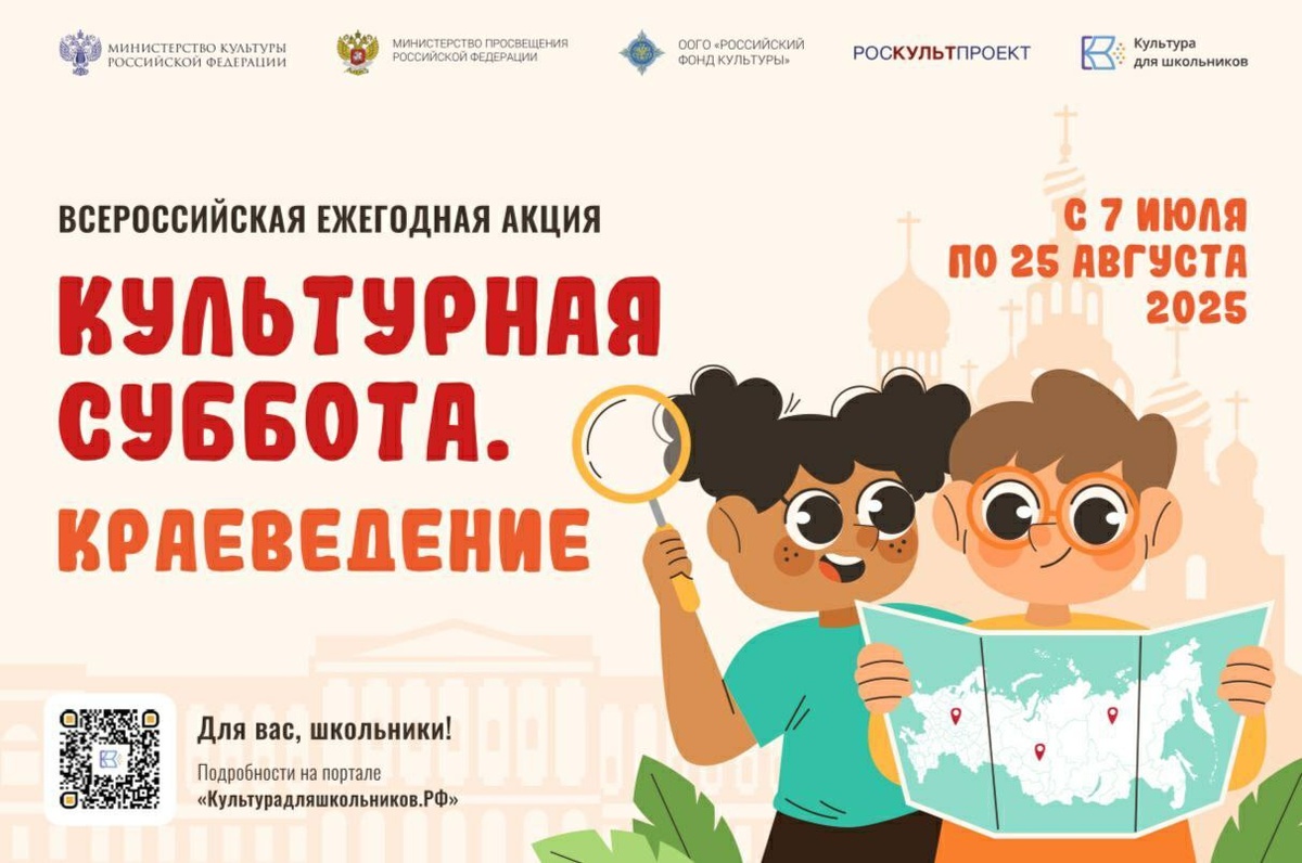 ✨ Всероссийская акция «Культурная суббота. Краеведение» проводится в рамках проекта «Культура для школьников». Цель мероприятия — популяризация традиций народов России, изучение истории и культуры регионов страны. Акция проходит пятый раз, собрав свыше 60 тыс. участников. Школьники могут продемонстрировать знания в области краеведения и народной культуры. 👉 Прислать новость 💥 Проект "Чехов Детям"