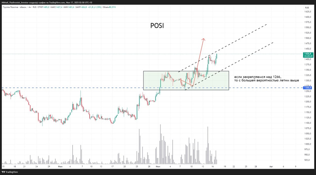 За Позитивом следите? $POSI Не знаю на каких дрожжах, но двигается очень уверенно на север. Минимумы и максимумы повышаются. Нет агрессивных продаж в коррекции. С большей вероятностью будет вылетать еще выше