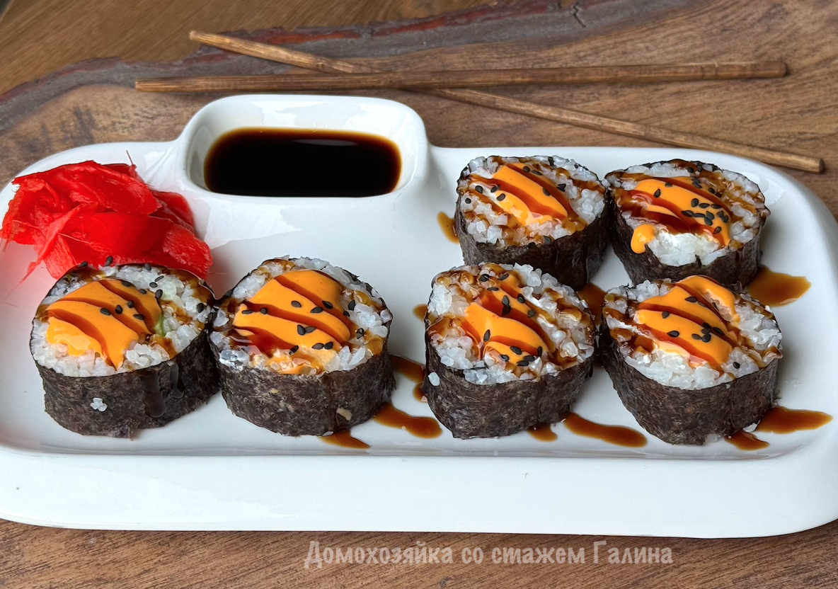 На этот раз решила сделать роллы с кальмарами — просто так, для себя и мамы. Ну а почему бы и нет? Мама их обожает, да и я не против домашних роллов. Начинки использую разные, но самые любимые — роллы с подкопчёнными мидиями. У них получается особенно яркий и насыщенный вкус. Хотя — почти все варианты мне нравятся. Перед подачей обязательно поливаю соусом: унаги или якитори — эти добавки делают вкус ещё интереснее. И да — так как это домашние роллы, я не заморачивалась соблюдать все тонкости японской кухни. Рис взяла обычный круглозерный, который есть дома. Не вижу смысла специально покупать «рис для суши» — кажется, это больше маркетинговый ход. На вкус особой разницы не замечаю. Не хочу никого обидеть, уважаю профи, но напомню: это всё-таки домашняя кухня, а не ресторанное блюдо. Вы же меня понимаете 😉. С кальмарами всё просто: у меня они были уже очищенные — я всего лишь опустила их на 2 минуты в кипящую подсоленную воду. Главное — не переварить, иначе станут жёсткими и резиновыми.