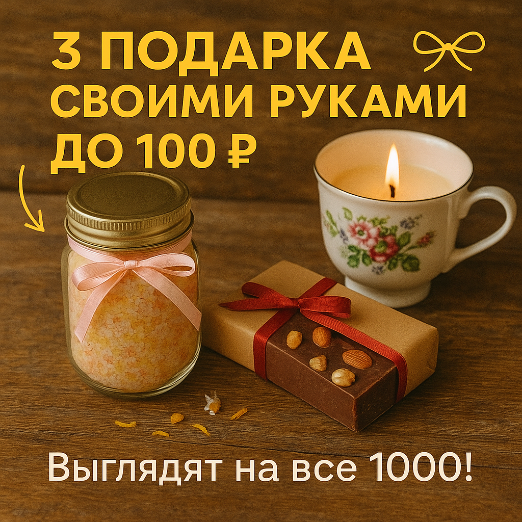В этой статье поделюсь тремя шикарными идеями. Гарантирую: получатель будет в восторге, а ты — в плюсе 😉 💡 Секрет: добавь сушёные лепестки (ромашка, календула, чай). Это добавит «дороговизны». 💡 Фишка: можно сделать шоколад в форме сердец или букв — найдёшь такие формы на Aliexpress за копейки. 🎁 Упаковать можно в крафт-бумагу, подписать мило: «Огонёк уюта для тебя». 💡 Лайфхак: если нет воска — используй обычную свечку из хозмага, растопи её и перелей. Подарок — это не про деньги. Это про внимание, тепло и немного фантазии. Даже с 100 рублями можно сделать эффектный презент, который запомнится надолго.
