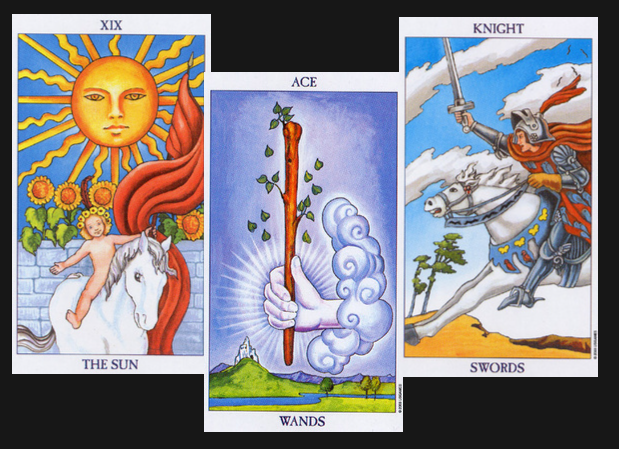В общем что чувствуете от Солнца, Туза Жезлов и Рыцаря Мечей? Какие мысли приходят?