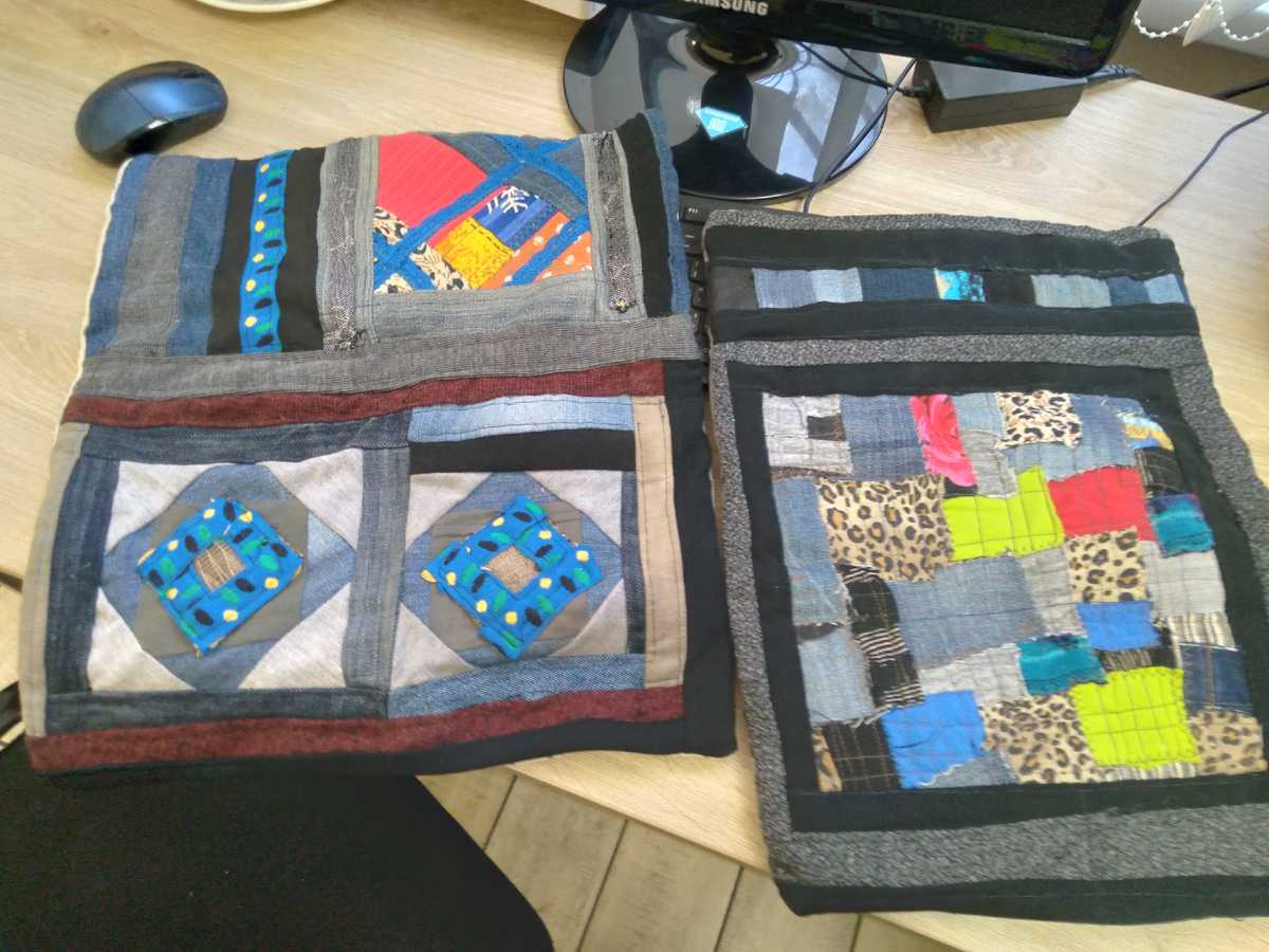 Всем, здравствуйте! Снова я с опозданием, но лучше поздно, чем никогда! Коврики уже давно служат в других местах, покинув мой рабочий стол. А я вот только сейчас посмотрела фото и решила похвастаться. Подкладушки на стулья, лоскутная техника, смесь разных стилей, училась и продолжаю учиться. Квадрат в квадрате, ленивый боро, полосочки с вариациями. Сейчас времени ни на шитьё, ни на огород не хватает, работаю в офисе в программе на компе, так что, увы! Да, ещё было расстройство, не могла в свой канал попасть! Но сейчас всё наладилось! А у вас что новенького или старенького?