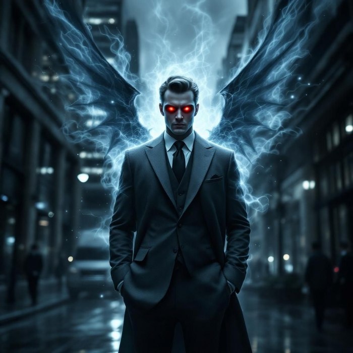 Теперь он выглядел страшно. Костюм разорван, волосы растрепаны, а глаза... в глазах плясали красные искры. Но главное — он больше не скрывал свою истинную природу.