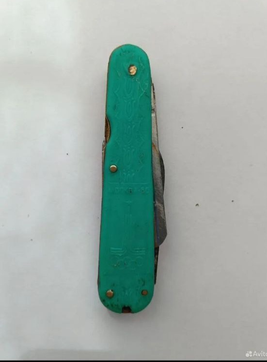Вот такой ножик времен СССР с символикой "Олимпиада 80", т.е. ножу уже 45 лет! Уже конечно старенький, ржавенький. Но купили же!