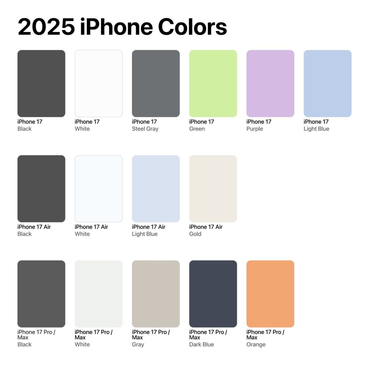 Журналисты раскрыли информацию о цветах всей линейки iPhone 17 на основе внутренних документов Apple