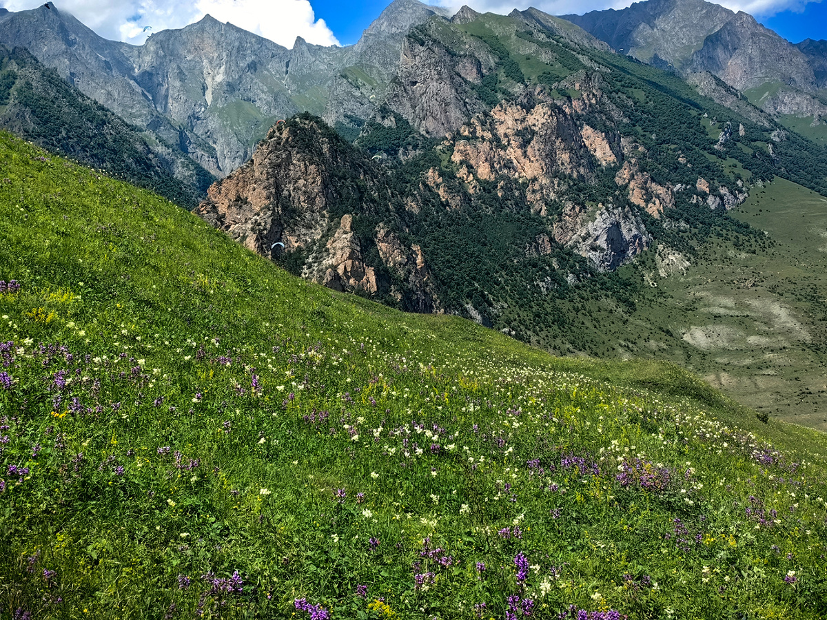 Первая причина подкупает своей "оригинальностью". Да, ничего нового не скажу, тут сумасшедшей красоты горы. Шесть вершин-пятитысячников, в том числе самая высокая гора России и Кавказа - Эльбрус. Высокогорные пейзажи тут украшают не только цветочные поля и альпийские луга, но и снежные вершины.