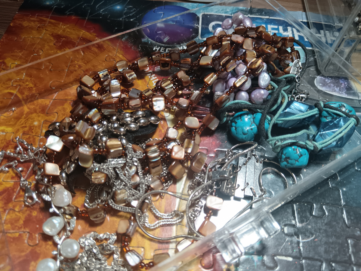 Здравствуйте, дорогие друзья! Пишу уже ночью, потому как приехали мы вчера с мужем уже в первом часу)) Но не разобрать и не показать - это не по-моему 🙂 Поэтому быстренько пробегусь по новым лотам. Немного предыстории! Очередной продавец, который вернулся, а сначала капризничал. Кстати, та женщина, которой я предложила 15 тысяч за всю ее гору посуды, тоже объявилась, но у меня , если честно, уже пропало желание. В общем, договорились мы с ним на поздний вечер, а ехать загород в противоположном нам направлении! Приехали, а там мужичок с пивом, говорит - подвезете до дома? Я так и опешила. А мы еще с мужем думаем: "Чего это люди, живущие в этих особняках барахлишком приторговывают" 🤣 Ну ладно, так и быть - повезли. Живёт он не далеко, тоже в коттеджном посёлке, но значительно скромнее. Забрали, как и договаривались и вот теперь уже начну вам показывать 🙂 Кучка бижутерии! Еще одна кучка 🙂 И еще, думаю тут нет ничего стоящего! А вот в этой кучке раскопала кучку серебра)) Еще и в