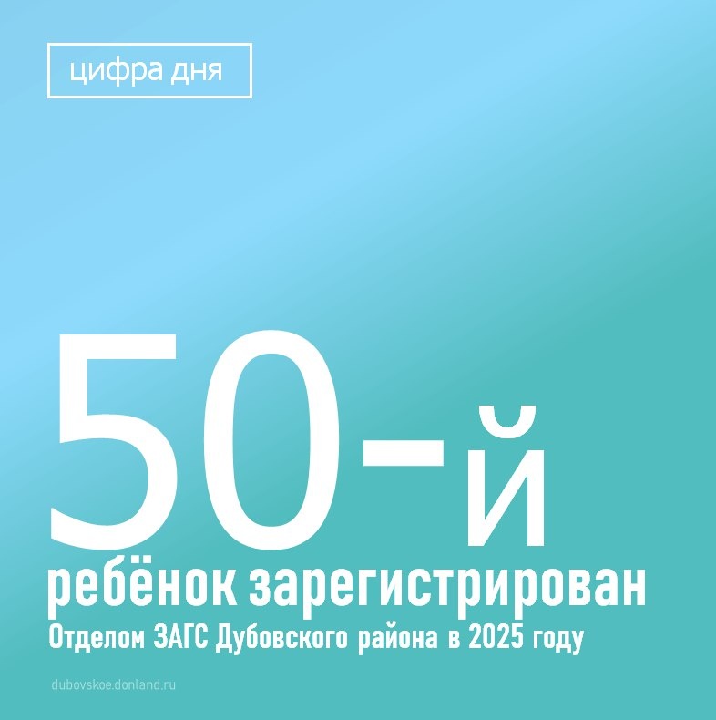 В отделе ЗАГС Дубовского района зарегистрировано рождение 50-го ребенка! Поздравляем Александру и Александра Суровцевых с рождением дочери Евы. Это радостное событие важно не только для их семьи, но и для всего района: Ева стала 50-м зарегистрированным ребенком в Дубовском районе. Желаем семье радости, счастья и гордости за маленькую принцессу. Пусть Ева растет здоровой, умной и красивой, а ваш дом всегда будет наполнен смехом и теплом. #ЗАГС #ДубовскийрайонРостовскаяобласть #рождение #статистика