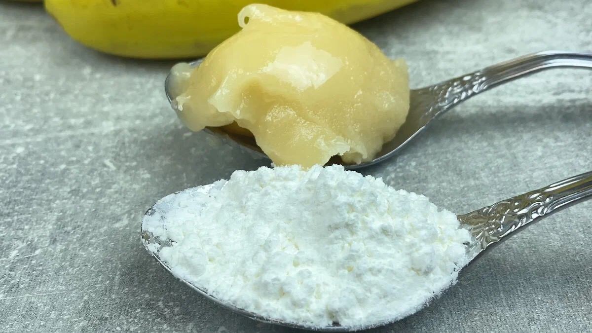 ・Мед и крахмал смешать до однородного беловатого цвета.