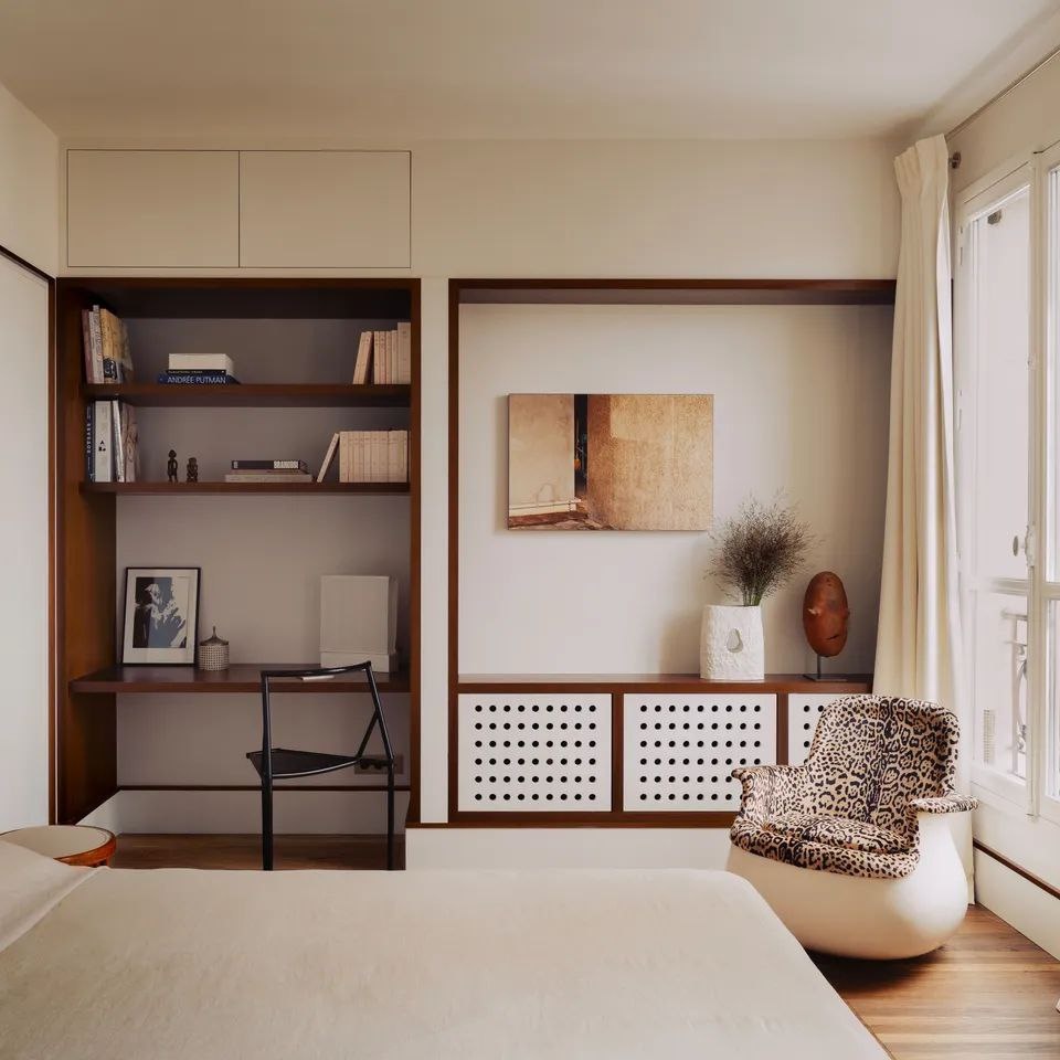 Давайте сегодня рассмотрим квартиру, расположенную в самом центре Парижа и отделанную в стиле остро модных 80х годов. Мне вообще нравятся контрастные сочетания материалов, включая дерево, мрамор и нержавеющую сталь. А ещё дизайнер ввела не избитый приём и подчеркнула архитектурные линии тёмным кантом, как будто создала рамы для картин в помещениях. А вам как?