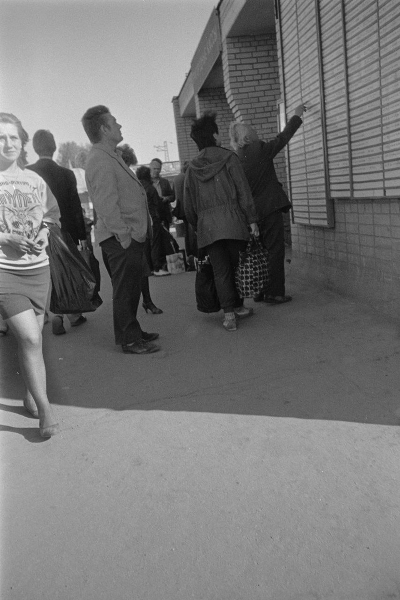 Пассажиры на станции Крюково изучают расписание электричек, конец 1980-х годов. Фото Юрия Сюганова из группы Советский Зеленоград подписаться / обсудить в чате