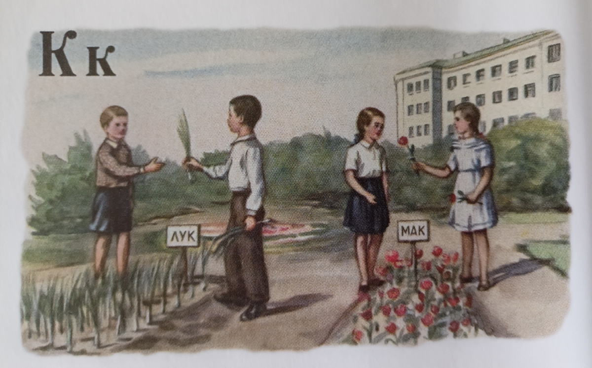 "При школе есть огород. Учитель поручил школьниками ухаживать за грядками. Роме дали грядку с маком. Симе дали грядку с луком. Рома дал лук Мише. Сима дала мак Нине."